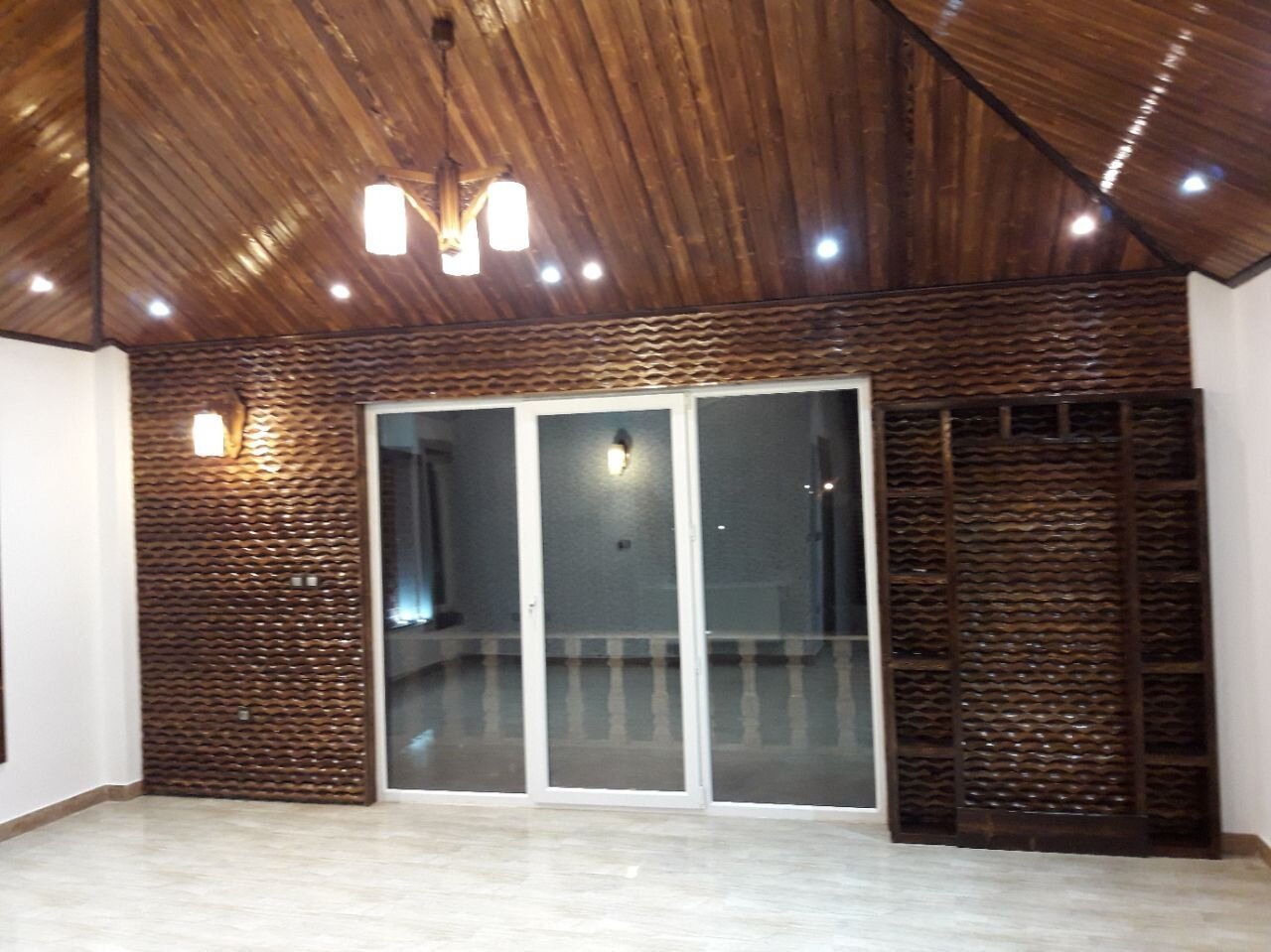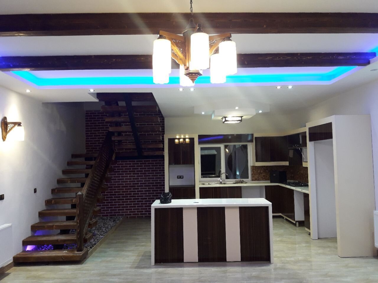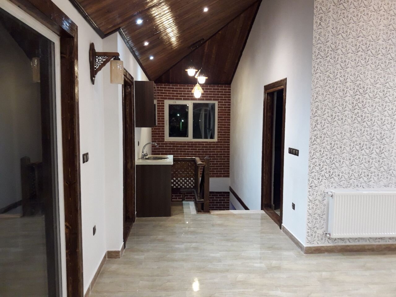 فضای داخلی این ویلا جنگلی بسیار هنرمندانه طراحی شده است. یکی از مهمترین آیتم هایی که این ویلا نوساز را زیبا و جذاب کرده است تلفیق رنگ های سفید و قهوه ای در دکوراسیون فضای داخلی است که ذوق و هنر معمار متبحر را به رخ می کشد. اختصاص دادن فضای مناسبی به آشپزخانه و استفاده از کابینت هایی جادار و مدرن به همراه نورپردازی از سقف جلوه ای بسیار زیبا به محیط بخشیده و فضای گرم و صمیمی نشیمن ویلا جان می دهد برای دورهمی های خودمانی و شب زنده داری های خانوادگی و دوستانه. همچنین سقف و پله هایی از چوب نمای خاصی به این ویلا دوبلکس بخشیده است که به همراه 3 خواب مستر بزرگ و دلباز نظرتان را به خودش جلب می کند.