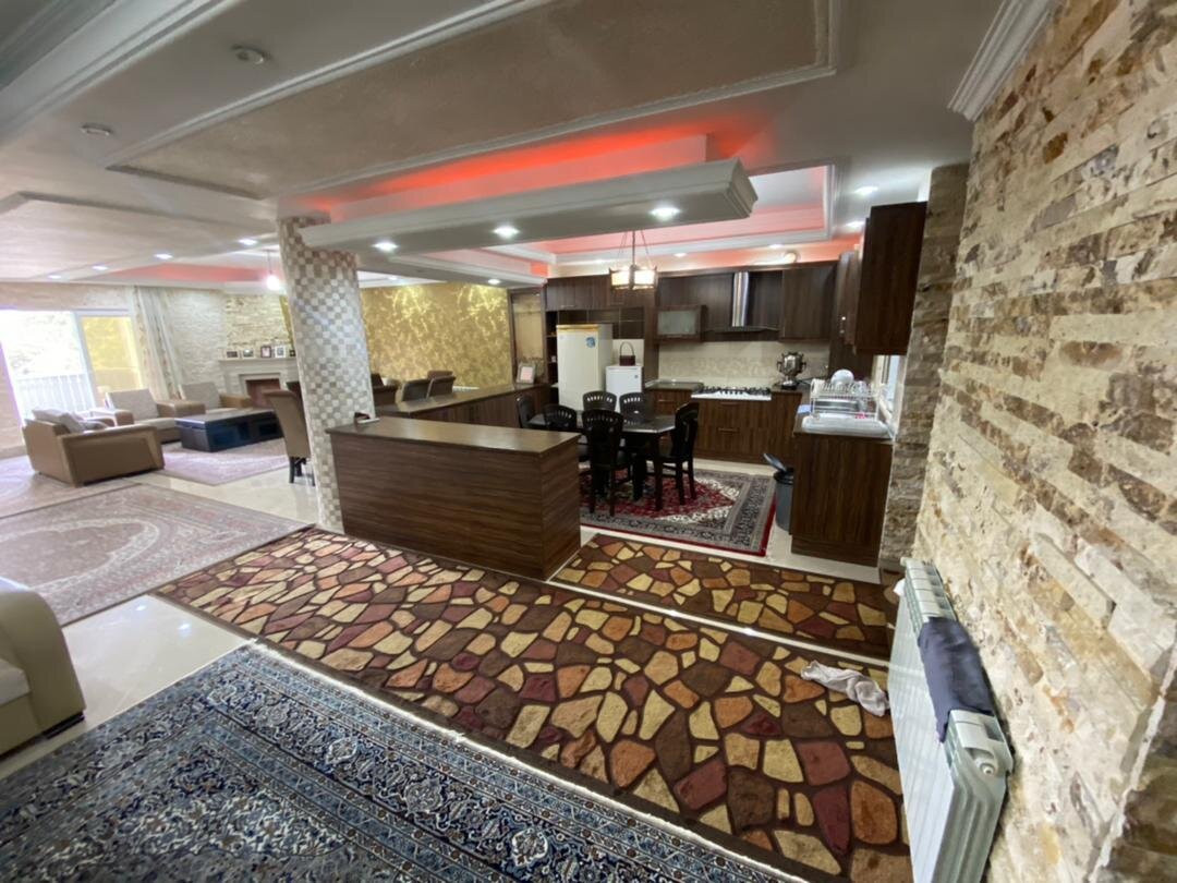 استراحت در این اتاق های دنج بسیار شیرین است و با وجود داشتن پنجره های دو جداره درجه ی یک هیچ گونه صدایی از بیرون ساخت وارد اتاق ها نمی شود. پذیرایی ویلا بسیار بزرگ، با شومینه ای زیبا مزین شده است. کفپوش های سرامیکی اعلا، شفاف همراه با سقف های کنف کاری شده و نور پردازی شده بسیار عالی به نظر می آیند. آشپز خانه ای زیبا همراه با اتاق پخت و با کابینت های ام دی اف رنگ چوب زیبا طراحی شده است. این همه زیبایی در کنار یکدیگر زیبایی بی نظیر به ساختمان داده اند.